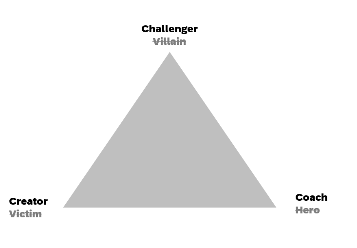 But there is an alterative universe to the drama triangle. If we can encourage the “victim” to perceive the “villain” as a “Challenger” this subtle change of language can unlock a totally new perspective. Instead of an evil interruption, instead we are presented with a temporary challenge to find a solution for. The line manager can therefore move from being a “hero” to being a “coach”. Someone to support the “victim” in tackling this challenge. Helping them think and act on solutions rather than ‘swoop in and save the day’. But the change to the “victim” is the most powerful of all. They move from a space of something happening to them, to becoming the “creator” of their own future. They decide what to do, they are in control and in overcoming this challenge they can have a boost of confidence & abilities that extends beyond the current situation and stands them in great stead for the future. Ironically, this is all as a result of us doing less, not more, for them.